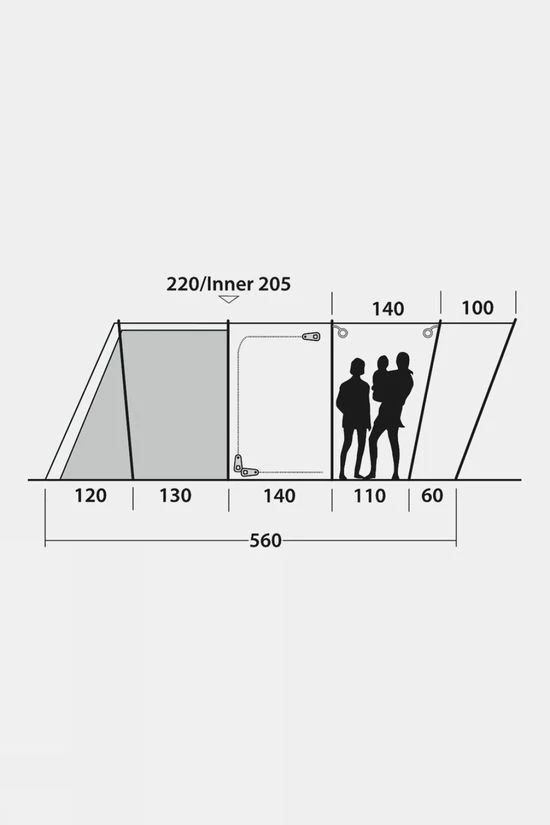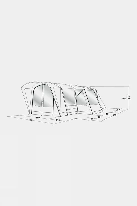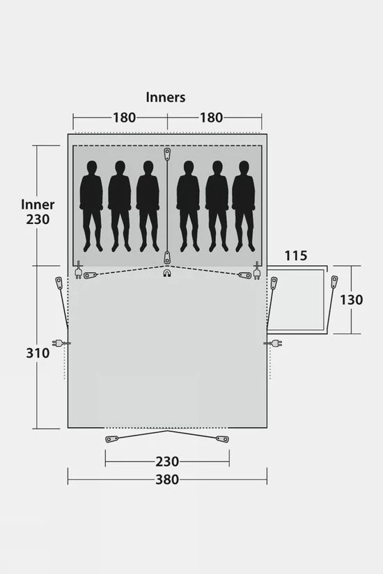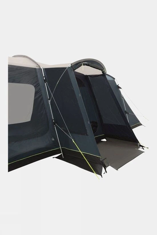 Sleeping six in two Ambassador Master Bedrooms featuring Dark Inners and Quick & Quiet Inner Doors, the Outwell Montana 6PE Tent offers generous tent living space. Twin side doors, one with a deep porch, ensure versatile access and extend ventilation options. Pre-bent poles deliver superb stability, steep walls to maximise internal space and full headroom throughout.