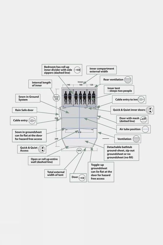 - Flysheet and inner feature cable entry points