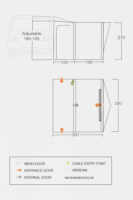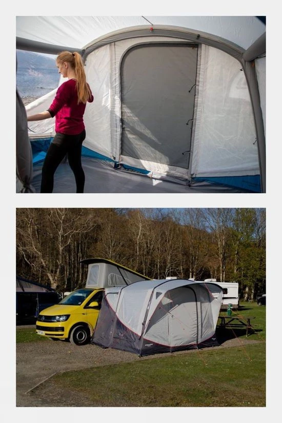 The Tolga Air VW Awning is designed for campervans and conversions. Using Vango’s AirBeam Technology, it is simple and fast to inflate and utilises Vango’s Sentinel Sport fabric with ColourLok technology to reduce the effects of UV on your awning. A handy covered entrance provides additional living space for relaxing in the shade or taking cover from the rain. The SkyTrack II System inside is perfect for hanging lights or the included SkyLiner. With a great weight to space ratio, this drive away awning has all the room you need to enjoy camping trips whilst still being light-weight and compact to combat the limited storage space often found in campervans. Enjoy every adventure with the Tolga campervan awning, for wherever you go.
